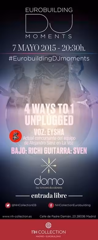 El NH Collection Eurobuilding, en la capital, acogerá todos los jueves de este mes de mayo los #EurobuildingDJMoments, unas sesiones de dos horas y media con distintos artistas que ofrecen su música en directo y cuya entrada es gratuita.