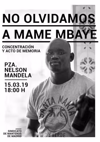 El sindicato aprovechará la concentración de este viernes a las 18 horas en la plaza de Nelson Mandela para protestar contra la Ley de Extranjería que, a su juicio, les condena a la irregularidad y precariza sus vida". "La violencia que sufrimos a diario es la que provocó la muerte de Mame. #MameNoOlvidamos", han señalado en Twitter.