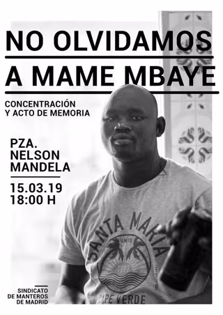 El sindicato aprovechará la concentración de hoy a las 18 horas en la plaza de Nelson Mandela para protestar contra la Ley de Extranjería que, a su juicio, les condena a la irregularidad y precariza sus vida". "La violencia que sufrimos a diario es la que provocó la muerte de Mame. #MameNoOlvidamos", han señalado en Twitter.
