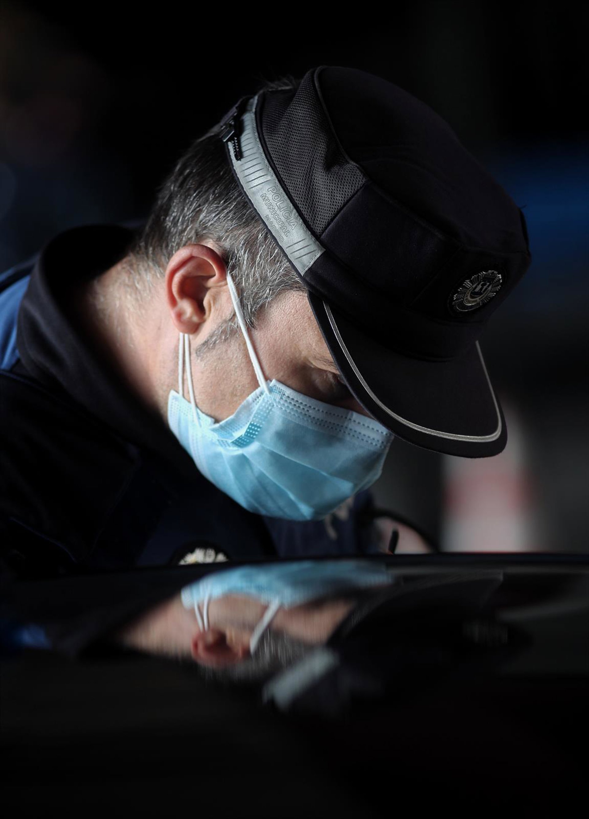Un agente de la Policía Municipal de Madrid realiza un control de movilidad en el distrito de Puente de Vallecas, Madrid (España), a 21 de septiembre de 2020. Puente de Vallecas es uno de los seis distritos de la capital que posee zonas básicas de salud - Eduardo Parra - Europa Press