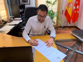 Archivo - Imagen del alcalde de Pinto, Diego Ortiz, firmando la carta dirigida al consejero de Sanidad, Enrique Ruiz Escudero, sobre los test serológicos. - AYUNTAMIENTO DE PINTO - Archivo