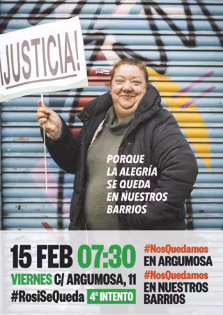 Según ha explicado el Sindicato de Inquilinos de Madrid en otras ocasiones, a Rosi le pretenden subir un 300 por ciento el alquiler, de 400 a 1.700 euros, por lo que llevan meses intentado negociar con la propiedad del bloque de la calle Argumosa 11 para renovar los contratos de sus arrendatarios, "pero prefieren echarlas para poder subir los alquileres desproporcionalmente".