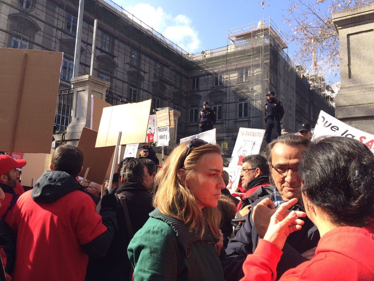 La excandidata de IU a la Presidencia de la Comunidad de Madrid ha acompañado este mediodía a miembros de la Plataforma de Afectados por la Hepatitis C en la presentación de la querella criminal contra la ex ministra de Sanidad Ana Mato y el actual titular de la cartera, Alfonso Alonso, por "omisión del deber de socorro".