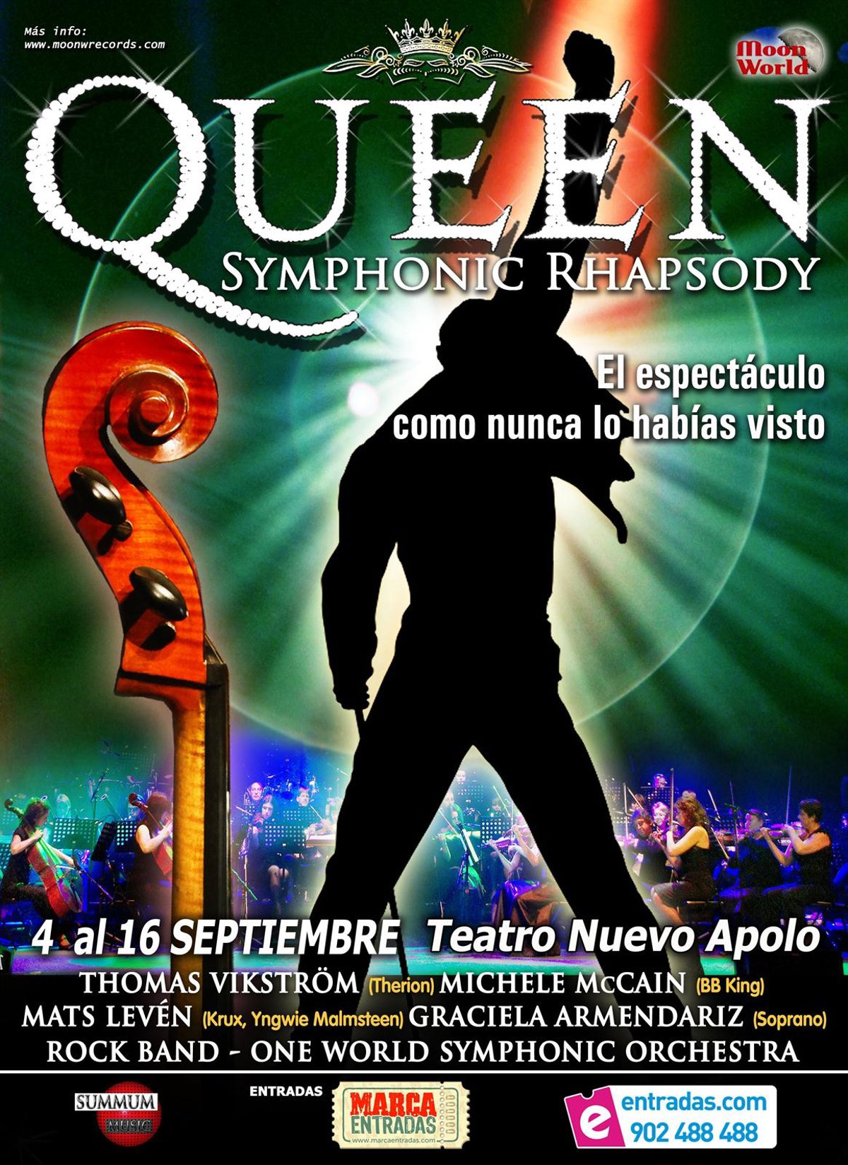 Las voces del espectáculo las pondrán Thomas Vikström, miembro de la banda de metal Therion; Michele McCain; el reputado cantante, compositor y productor Mats Levén; y Graciela Armendariz. 'Queen Symphonic Rhapsody' podrá verse en el Teatro Nuevo Apolo de Madrid del 4 al 16 de septiembre. Boletos desde 25 euros en taquillas o en Entradas.com.