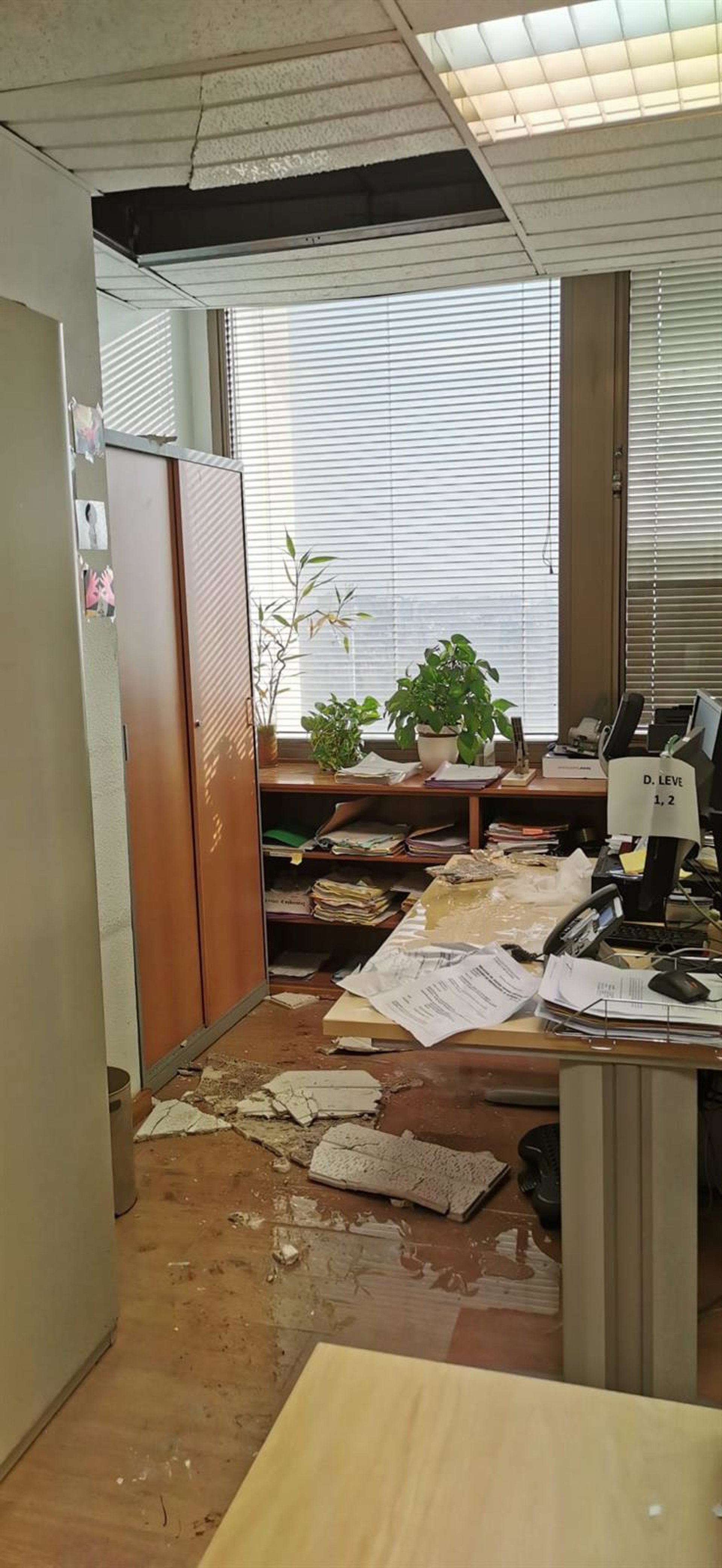 Concretamente, este incidente ocurrió en los Juzgados de Instrucción 23 y 35. El pasado viernes comenzó a gotear agua, hasta que finalmente se desplomaron cuatro losetas del falso techo sobre los puestos de los trabajadores, quedando en algún caso todo el material informático inservible.
