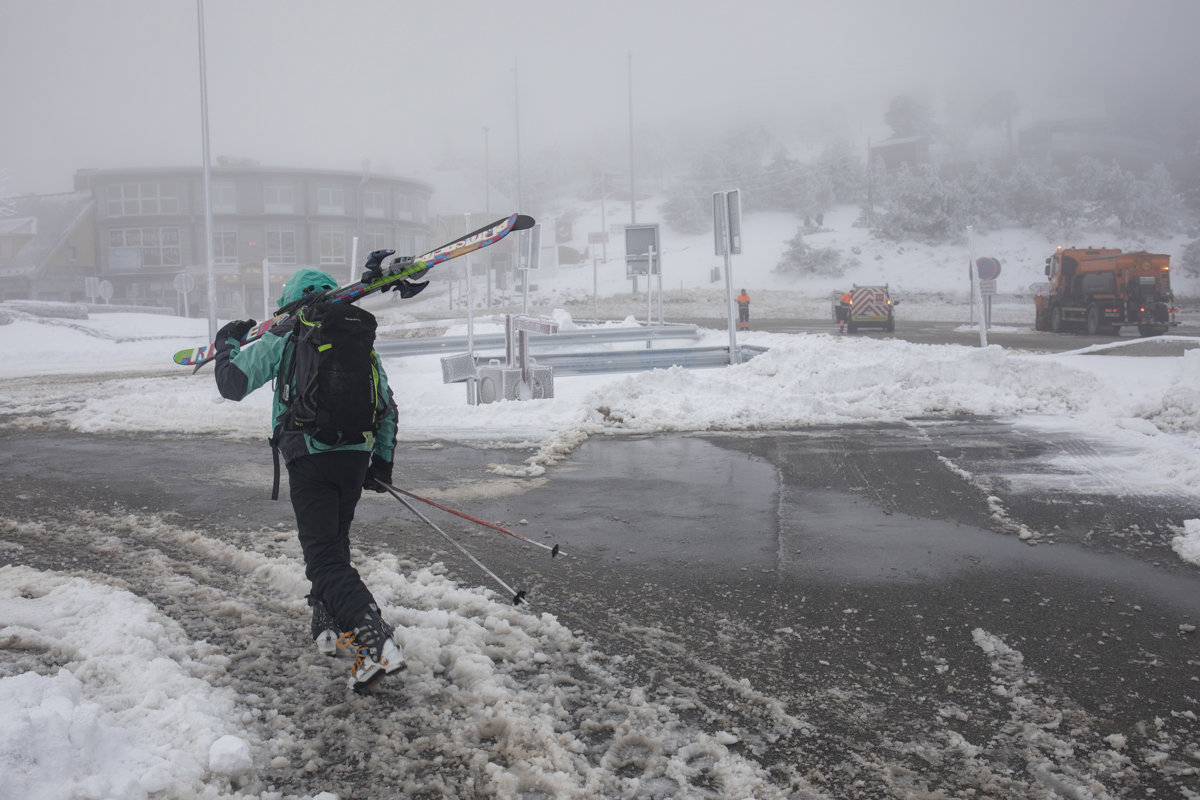 Un esquiador lleva su equipo en el Puerto de Navacerrada, a 19 de enero de 2023, en Navacerrada, Madrid (España). - Rafael Bastante - Europa Press