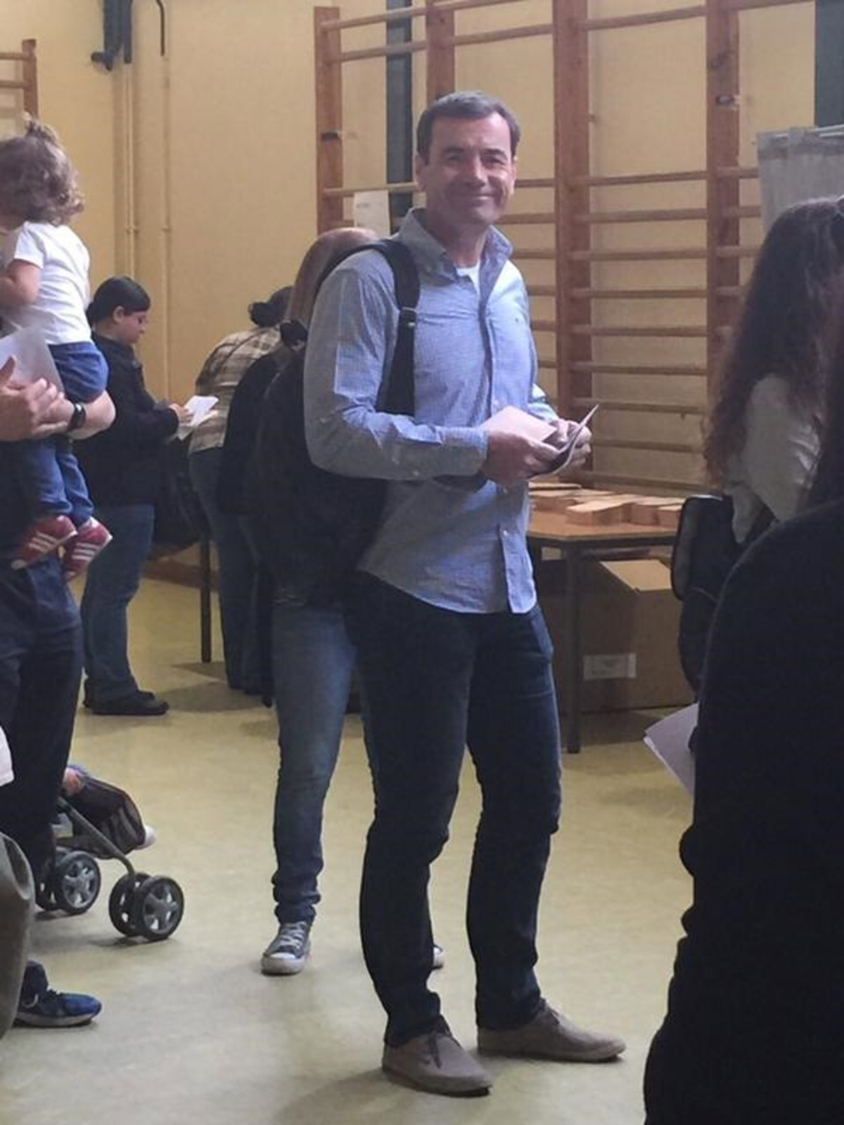 A esta frase le acompaña una foto de Tomás Gómez haciendo cola para votar. Con camisa azul y mochila negra, Gómez sonríe a la Cámara en estas votaciones, las primeras en las que no es cabeza de lista desde hace mucho tiempo.