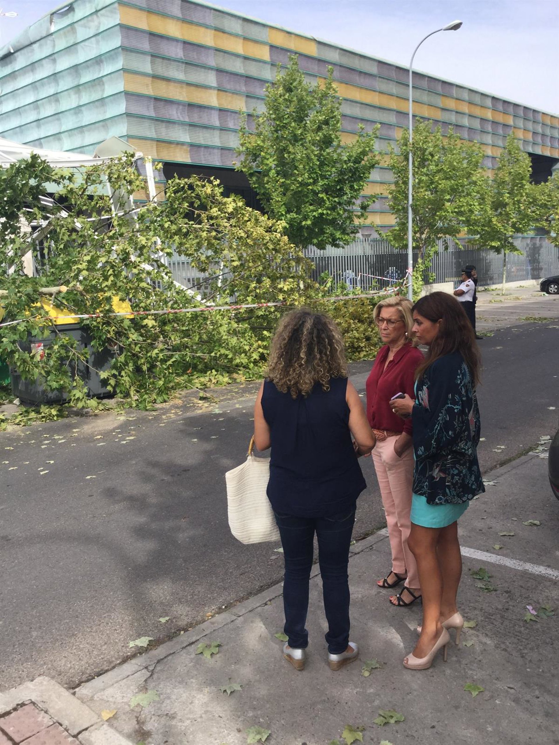 "Hay que significar que no hemos tenido que lamentar daños personales. Sólo ha habido una vecina con heridas importantes --se le ha clavado un árbol en la pierna--, de las que fue atendida ayer en el Hospital del Tajo", ha explicado la primer desde la Plaza de la Paloma, en el barrio de Las Aves, una de las zonas más afectadas por la tormenta.