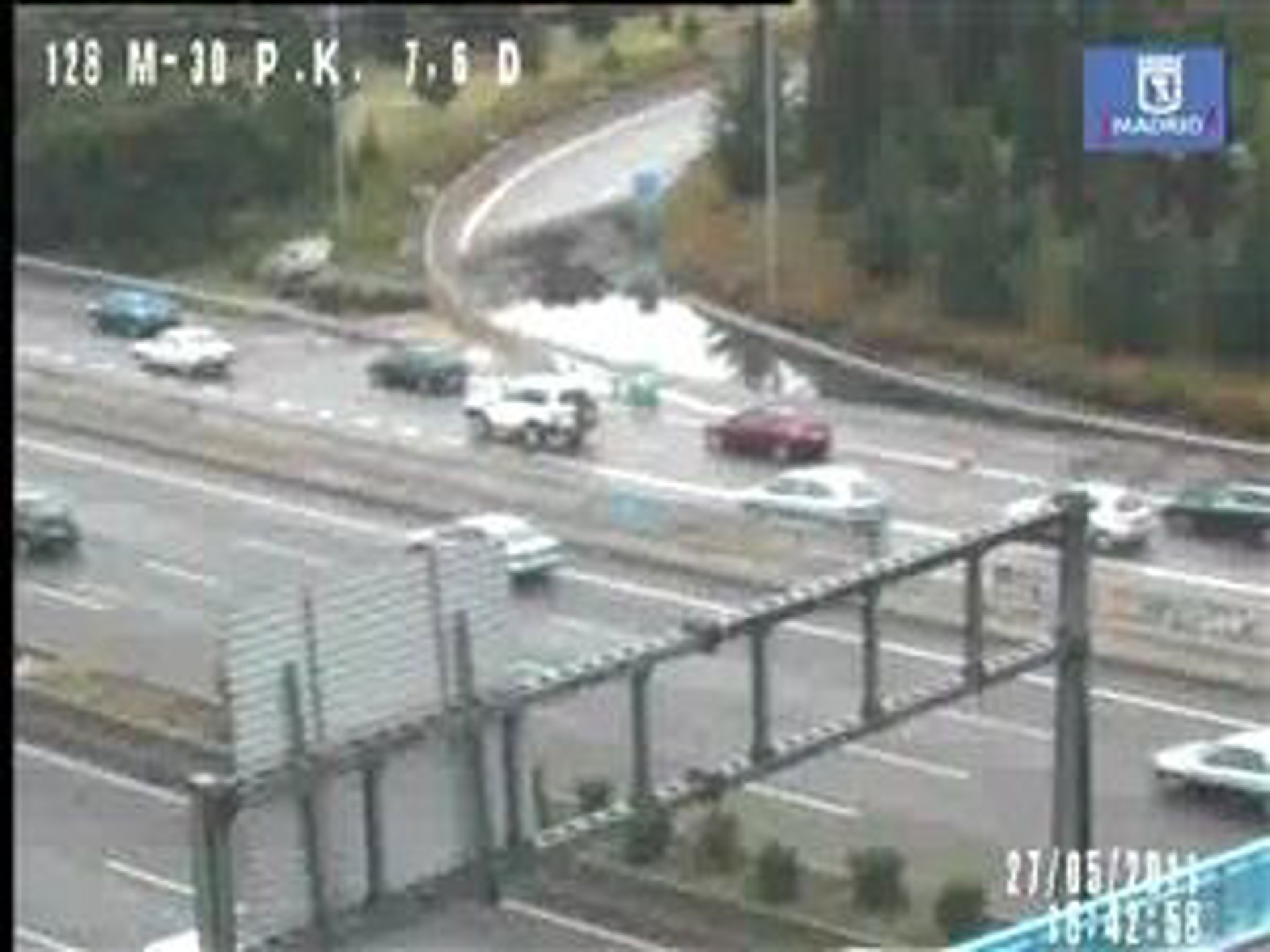 Según informa el Centro de Pantallas, la salida de la M-30 a la calle O'Donnell y la zona de la Avenida de la Ilustración (nudo de Colmenar) presentan grandes balsas de agua que han provocado cortes de tráfico en algunas salidas y desvíos de carriles, lo que está ralentizando la circulación.