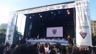 Escenario en Colón de la manifestación del Orgullo - EUROPA PRESS