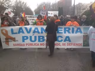 Los trabajadores de la Lavandería Central Hospitalaria se han manifestado este domingo en la decimosexta 'Marea Blanca' para pedir la vuelta a la gestión pública del centro y que el recurso presentado contra la externalización de la gestión sea aceptado por el juez y les dé la razón.