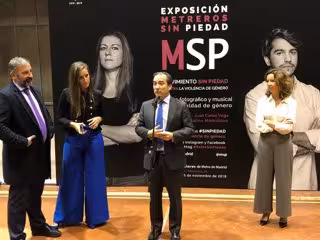 El consejero delegado de Metro de Madrid, Borja Carabante, ha inaugurado la exposición 'Metreros sin Piedad',24 retratos en blanco y negro de mujeres y hombres, todos empleados de Metro, en una réplica de la exposición que en marzo fue el pistoletazo de salida de Movimiento sin Piedad, con el que mujeres del mundo de la política, deportistas, cantantes y figuras ligadas al mundo de la cultura decían 'no' a la violencia de género y 'sí' a la igualdad.