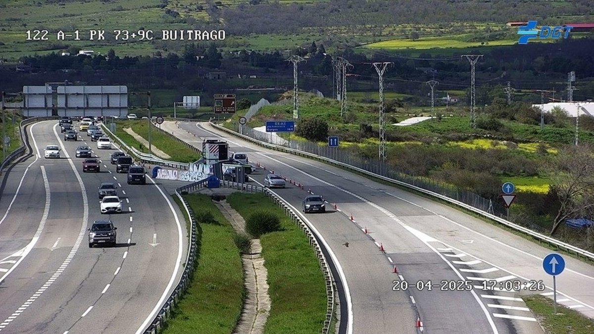 La operación retorno por Semana Santa está dejando este domingo, 20 de abril, retenciones en el tráfico en las carreteras con dirección a Madrid, especialmente en la autovía A-1 a su paso por El Molar y Robregordo.
