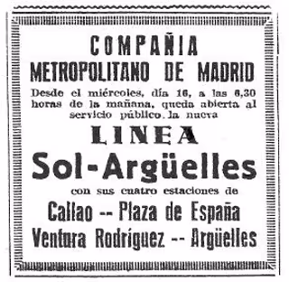 Ese día entraron en funcionamiento cuatro de las paradas más utilizadas hoy en día por los madrileños: Callao, Plaza de España, Ventura Rodríguez y Argüelles.