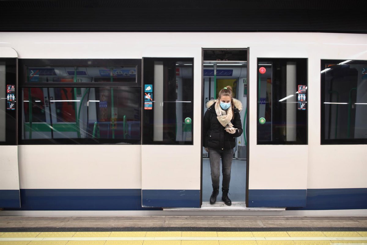 Una mujer protegida con mascarilla se baja de uno de los trenes de Metro de Madrid. - Eduardo Parra - Europa Press
