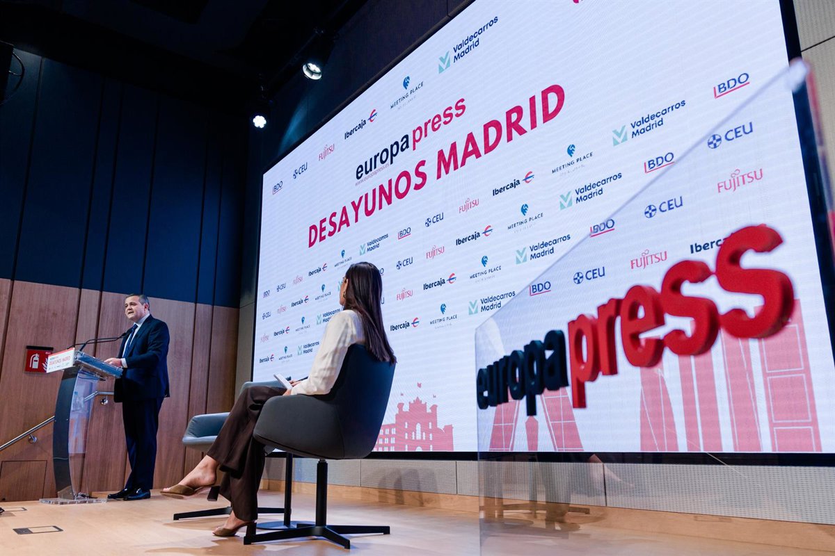 El consejero de Vivienda, Transportes e Infraestructuras, Jorge Rodrigo (7d), participa en un desayuno organizado por Europa Press, a 28 de abril de 2026, en Madrid (España). - Carlos Luján - Europa Press