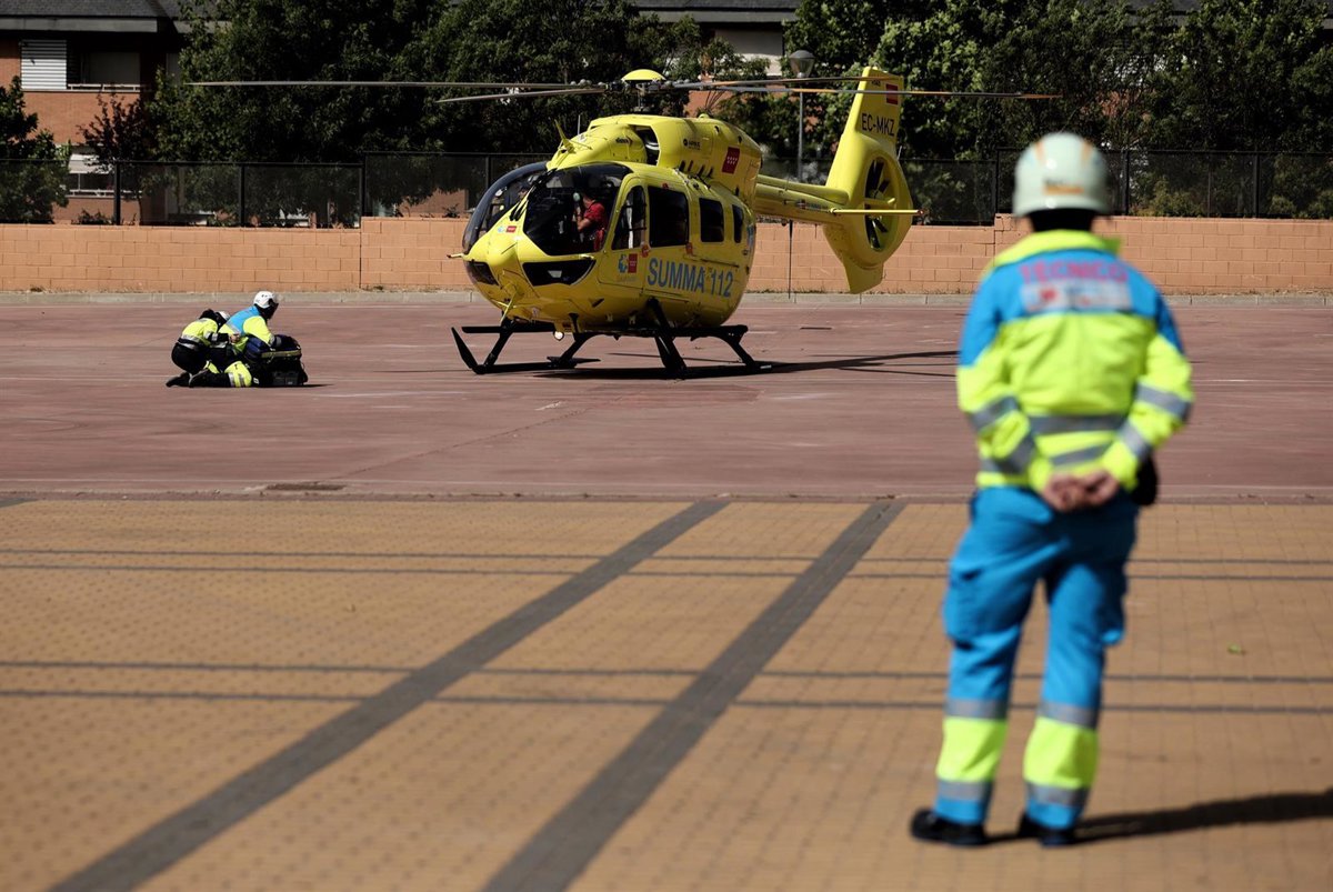 Archivo - Maniobras de entrenamiento de uno de los dos helicópteros medicalizados de la Administración regional, en el Recinto Ferial y Deportivo Nuestra Señora del Retamar de Las Rozas, a 17 de junio de 2022, en Las Rozas, Madrid (España). - Eduardo Parra - Europa Press - Archivo