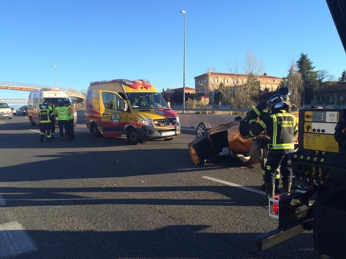 MADRID, 2 Abr. (EUROPA PRESS) - Una joven de 23 años ha sido trasladada al Hospital de La Paz en estado grave tras sufrir un accidente de tráfico en la M-607 y quedar uno de sus pies en estado "catastrófico", ha informado a Europa Press un portavoz de Emergencias Madrid. El suceso ha tenido lugar sobre las 8.20 horas de este domingo a la altura del kilómetro 14 de la M-607 en sentido entrada a Madrid. El vehículo, por causas que se investigan, ha perdido el control y ha volcado tras impactar contra la mediana. A la zona se han desplazado efectivos del Samur-Protección Civil y han comprobado que el conductor, un joven de 23 años que había salido del vehículo por sus propios medios, sufría diversas contusiones de carácter leve. Los sanitarios le han trasladado al Hospital de La Paz. La joven herida que acompañaba al conductor ha sufrido lesiones muy graves en un pié a causa del accidente al presentar un pié en estado "catastrófico". El Samur ha procedido a estabilizarla e intubarla para poder trasladarla también al Hospital de La Paz donde ha ingresado con pronóstico grave. La Guardia Civil investiga las causas del accidente.