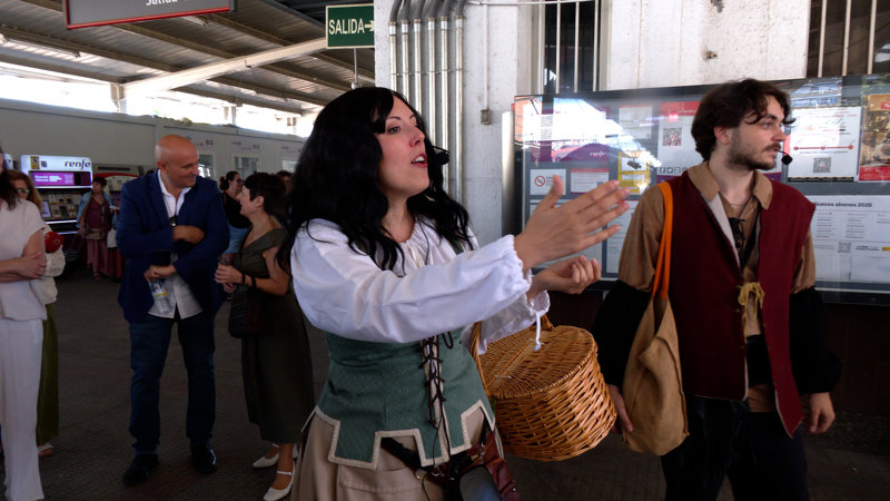 Además, todo el que viene al Tren de Cervantes se lleva un pequeño regalo. Una de las actrices, que interpreta a una comerciante del siglo XVII, entrega una pequeña muestra de frutos secos garrapiñados para degustar en los 35 minutos de marcha continuamente amenizada.