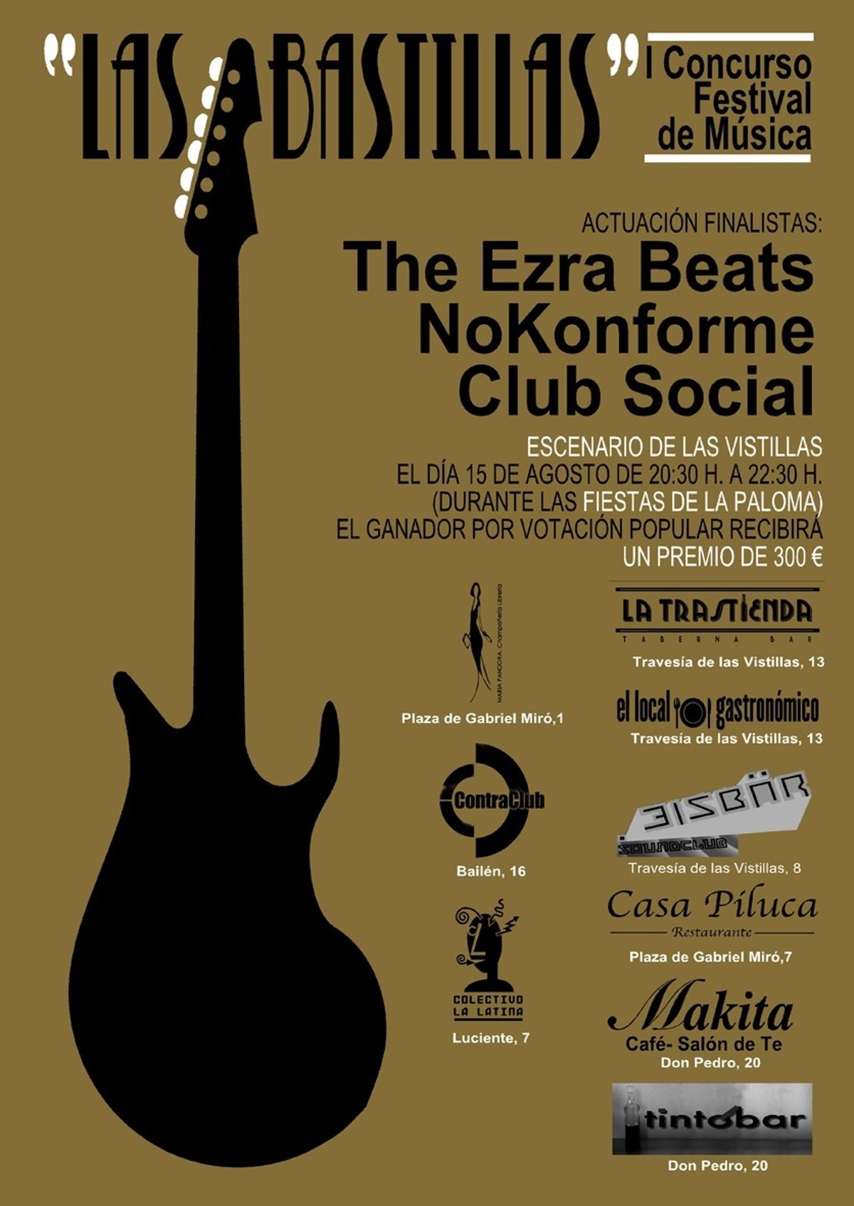Tras las actuaciones de los grupos, de unos 20 minutos aproximadamente, los asistentes tendrán la oportunidad de votar por sus bandas favoritas en nueve bares de la Asociación de las Vistillas, localizados en los alrededores del escenario.