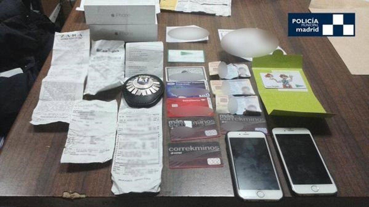 En el registro del vehículo se recuperaron varias tarjetas de crédito que coincidían con las identificaciones de las composiciones de los DNI; varias tarjetas de regalo de diferentes firmas comerciales con sus ticket de compra por un valor de 1.500 euros; tarjetas de recarga de gasolina por un importe de 2.000 de euros; varias prendas de ropa de distintas marcas, y dos teléfonos móviles de alta gama en su embalaje original con su ticket de compra.