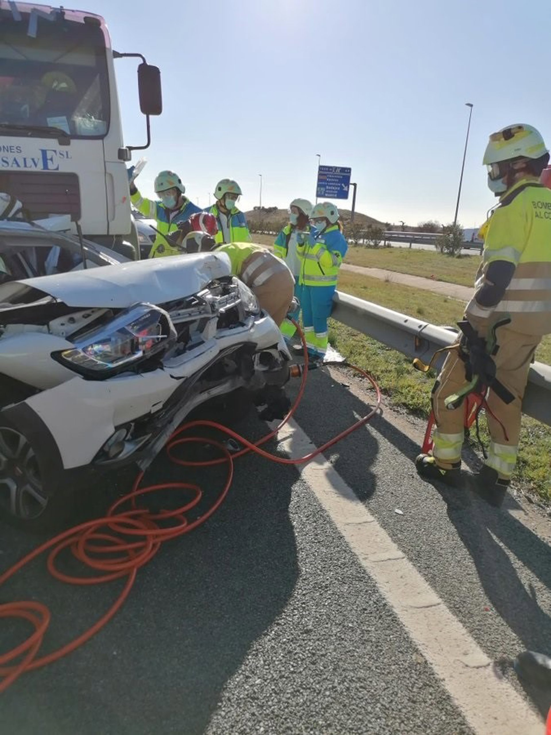 Hasta el lugar se han desplazado dos dotaciones de Bomberos del Ayuntamiento de Alcorcón, que han rescatado a la conductora de un vehículo, una mujer de 47 años, que luego ha sido asistida por sanitarios del Summa-112, que la han estabilizado trasladado en ambulancia al Hospital 12 de Octubre en estado moderada.