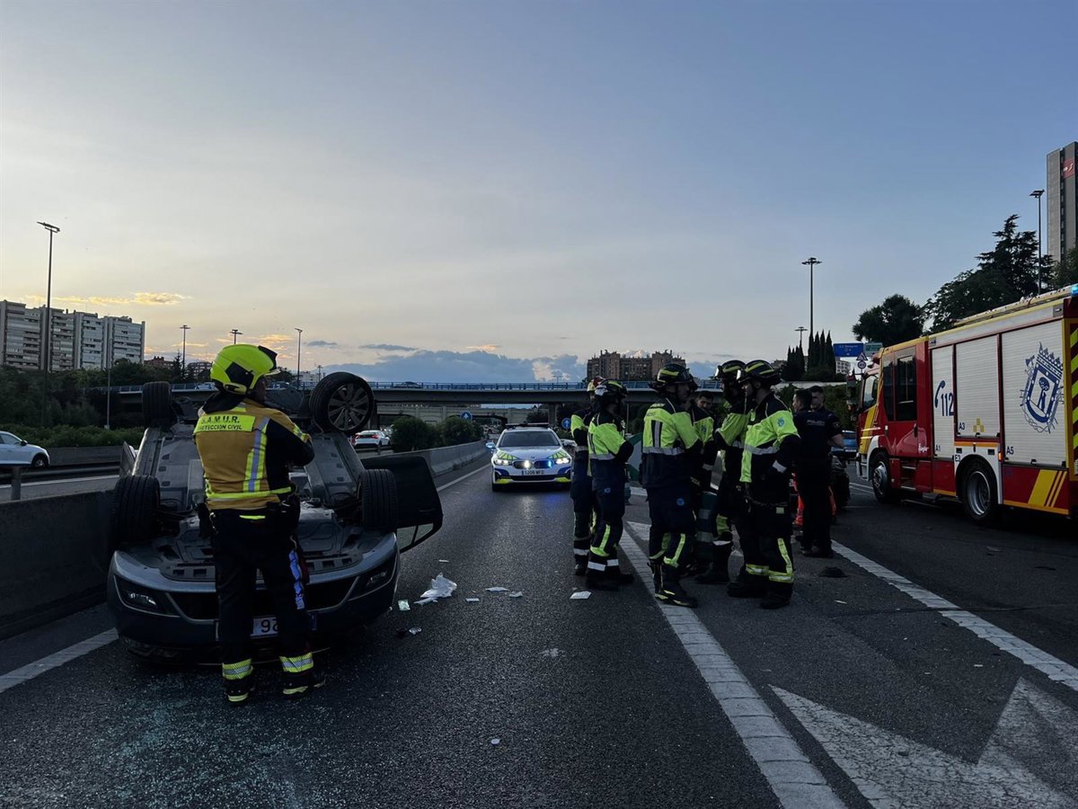 Efectivos de Bomberos Madrid han intervenido para voltear el vehículo implicado y retirarlo de la calzada, mientras que Samur-Protección Civil ha atendido a los tres heridos, que han sido trasladados a distintos hospitales sin que ninguno de ellos revista gravedad.