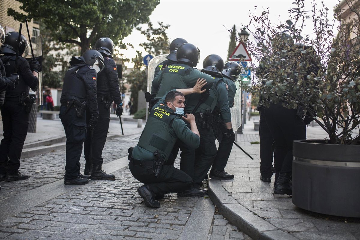 El Tribunal Superior de Justicia de Madrid (TSJM) ha ratificado las penas hasta cinco años de cárcel impuestas a once activistas por los disturbios que se produjeron el 21 de abril de 2021 durante un mitin de Vox en Navalcarnero que tuvo lugar con motivo de la campaña electoral y en el que varios guardias civiles resultaron heridos.