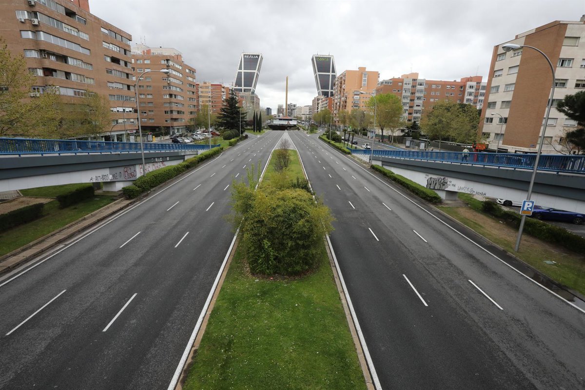Archivo - Paseo de la Castellana absolutamente vacío en las inmediaciones de Plaza de Castilla y las Torres Kio - Marta Fernández - Europa Press - Archivo