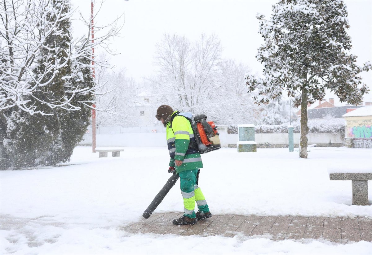 Un trabajador despeja la nieve, a 28 de enero de 2026, en Madrid (España).- Marta Fernández - Europa Press