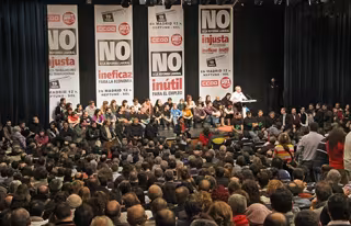 Posteriormente ha cargado contra una reforma laboral, "la más agresiva y brutal" de todo el periodo democrático, que "tira a la basura" el último acuerdo de negociación colectiva alcanzado entre sindicatos y empresarios, y que buscar abaratar el despido cuando el primer problema del país es el empleo.