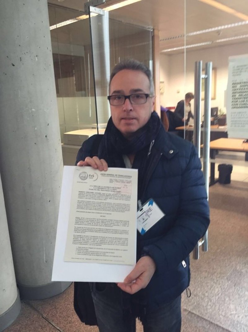 El secretario general de la Federación de Servicios de UGT-Madrid, Ricardo Tornamira, ha sido el encargado de registrar el documento y posteriormente ha incidido en declaraciones a los medios de comunicación que han cumplido "sobradamente todas las normas igual que las otras tres entidades". "Sólo se nos discrimina por ser un sindicato", ha señalado. Además, ha traslado que esperan "el amparo a la Presidencia" y que de no recibirlo irán "a los tribunales".