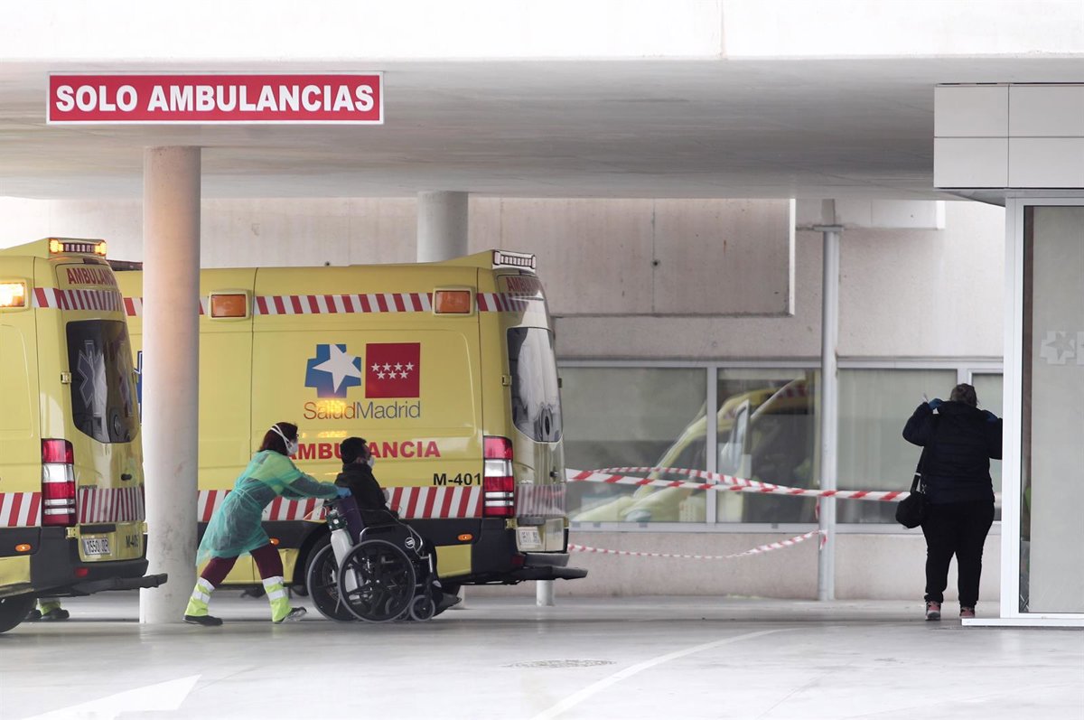 Una sanitaria empuja una silla con un paciente en la entrada de Urgencias del Hospital de Fuenlabrada - Eduardo Parra - Europa Press