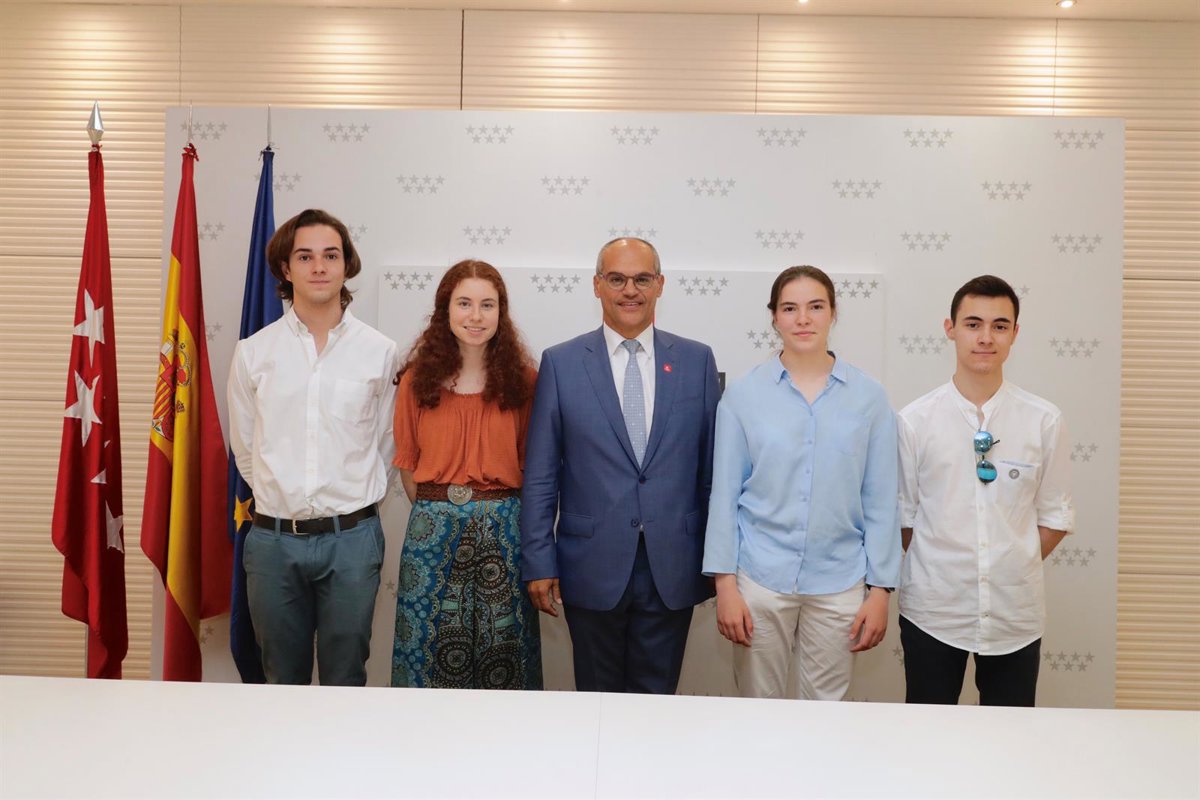 El consejero en funciones de Educación e Investigación, Rafael van Grieken, ha recibido este jueves a los cinco alumnos madrileños que han obtenido la mejor nota de la Evaluación para el Acceso a la Universidad (EvAU) este año, un empate a cinco con un 9,975 sobre diez.