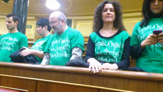 "Hemos pasado el control policial sin problemas. Sólo un conserje nos ha comentado que no podíamos entrar al Congreso haciendo propaganda, pero le hemos indicado que sólo defendemos la escuela pública porque entendemos que sin ella no puede haber democracia y el propio Parlamento no sería posible", ha afirmado.
