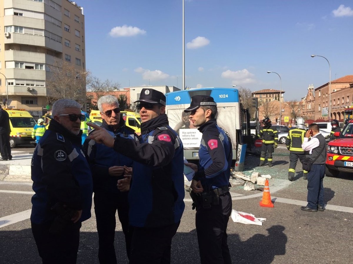 Varios heridos leves al sufrir un síncope un chófer de la EMT y colisonar contra - EMERGENCIAS MADRID