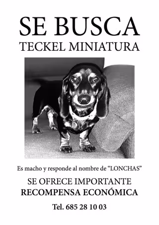 Ismael Vázquez, un vecino de Alcalá de Henares, ha ofrecido 10.000 euros de recompensa a quien encuentre a su perro 'Lonchas', de la raza teckel y nueve meses de edad, que desapareció el pasado 23 de octubre en el centro comercial La Dehesa de la localidad del sureste de Madrid.
