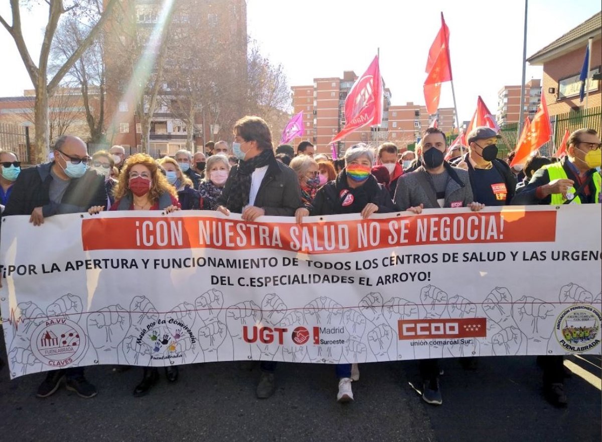 El alcalde de Fuenlabrada, Javier Ayala, junto a los vecinos y sindicatos en la macha por la Sanidad pública. - COMISIONES OBRERAS (CCOO)