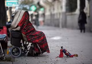 Archivo - Una persona en silla de ruedas y tapada con una manta pide dinero - Eduardo Parra - Europa Press - Archivo