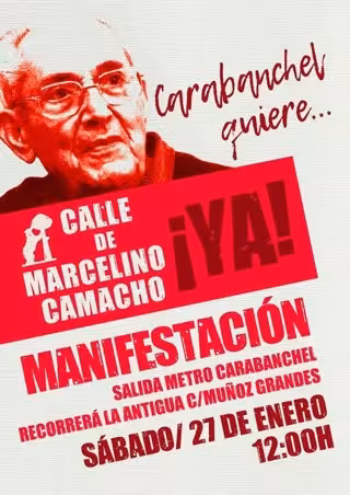 Por último, los promotores de la manifestación han señalado que ésta tendrá lugar escasos días después del centenario del nacimiento de Marcelino Camacho, "un luchador sindical incansable que vivió casi toda su vida en Carabanchel, unos años entre rejas y otros en su casa del barrio".