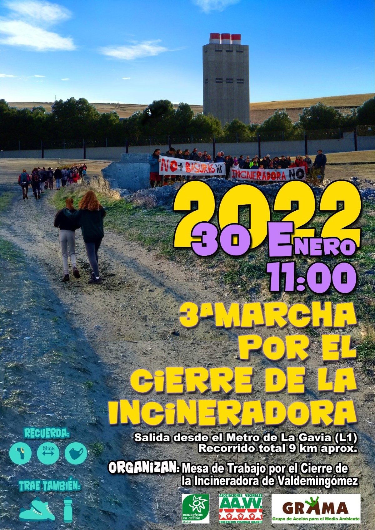 La marcha desde el Ensanche de Vallecas hasta la incineradora de Valdemingómez partirá el próximo día 30 del Metro de La Gavia a las 11 horas y finalizará sobre las 13,30 horas en el Metro de Las Suertes.