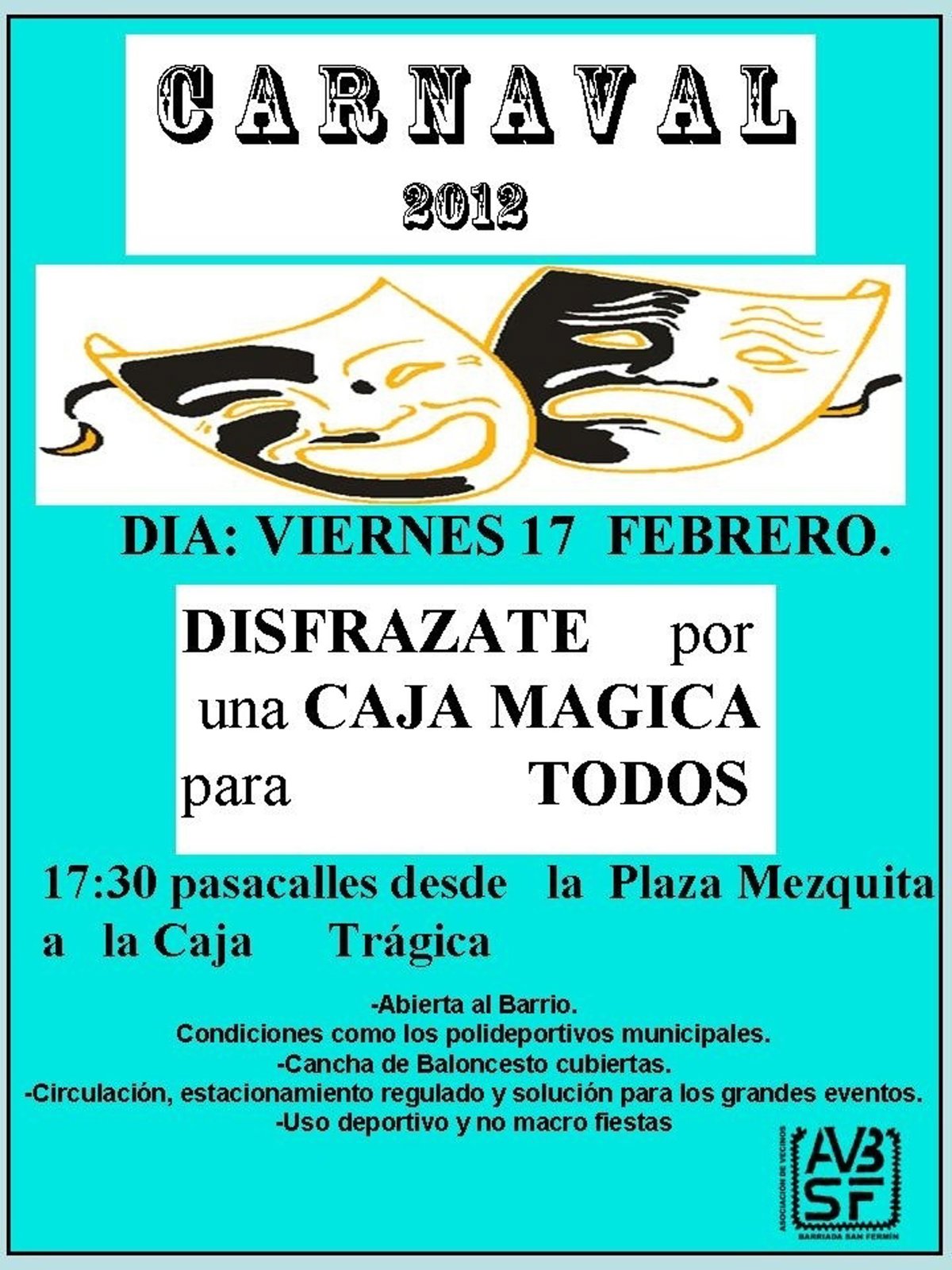 La Asociación de Vecinos Barriada de San Fermín ha informado del inicio de un calendario de movilizaciones que arrancará este viernes con un carnaval reivindicativo y que tiene como objetivo exigir la apertura al barrio de la Caja Mágica así como poner fin a las "molestias" que genera esta infraestructura en la zona.
