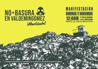 La manifestación arrancará a las 12 horas en la calle Real de Arganda con Puentelabra hasta llegar a la Junta Municipal. El lema será 'No + basura en Valdemingómez. ¡Movilízate!'.