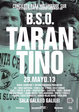 La Sala Galileo Galilei recibirá este miércoles a 20 artistas que interpretarán canciones míticas de películas de Tarantino en beneficio de la creación de una escuela de formación profesional en la zona más desfavorecida de Mozambique Sur, según ha informado la organización en un comunicado.