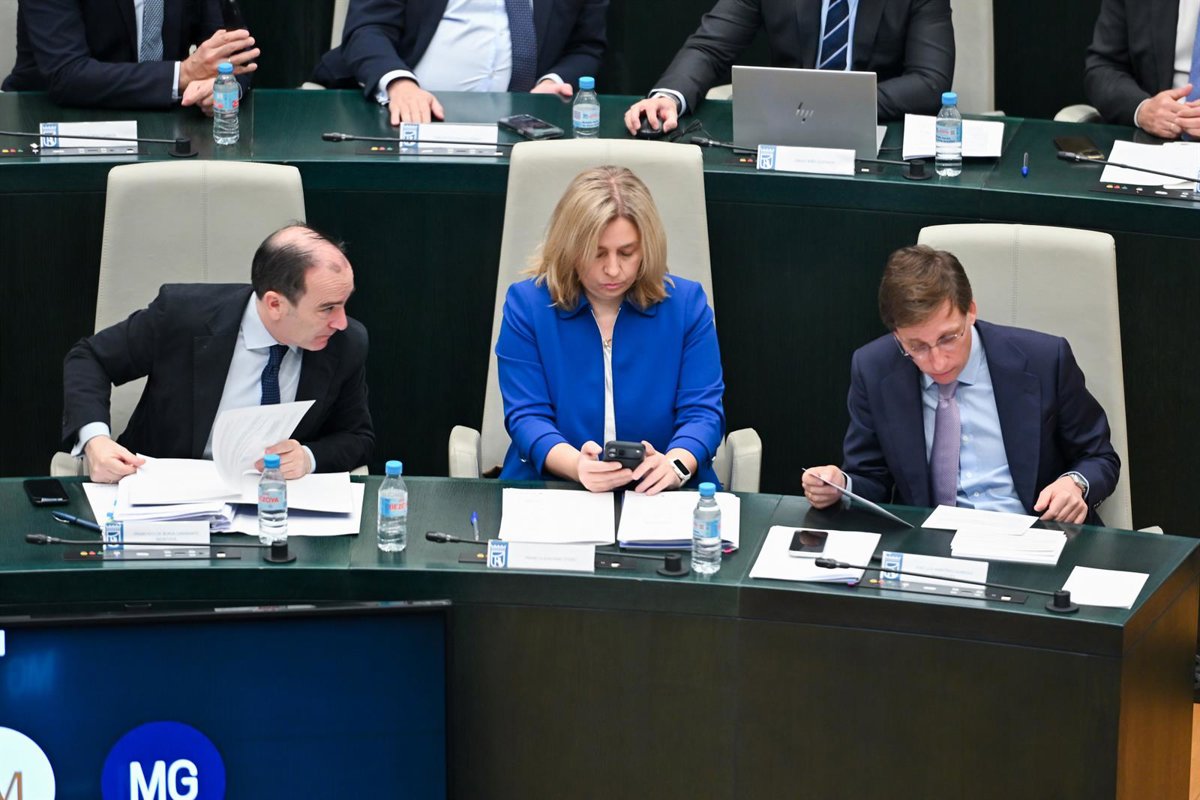 El alcalde de Madrid, José Luis Martínez Almeida (d), durante una sesión ordinaria del Pleno del Ayuntamiento de Madrid, en el Palacio de Cibeles - Gustavo Valiente - Europa Press