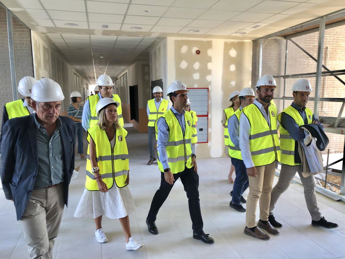 En el centro de la imagen, el consejero de Educación, Ciencia y Universidades de la Comunidad de Madrid, Emilio Viciana, visita las obras en el IES Gloria Fuertes de Alcobendas. - EUROPA PRESS