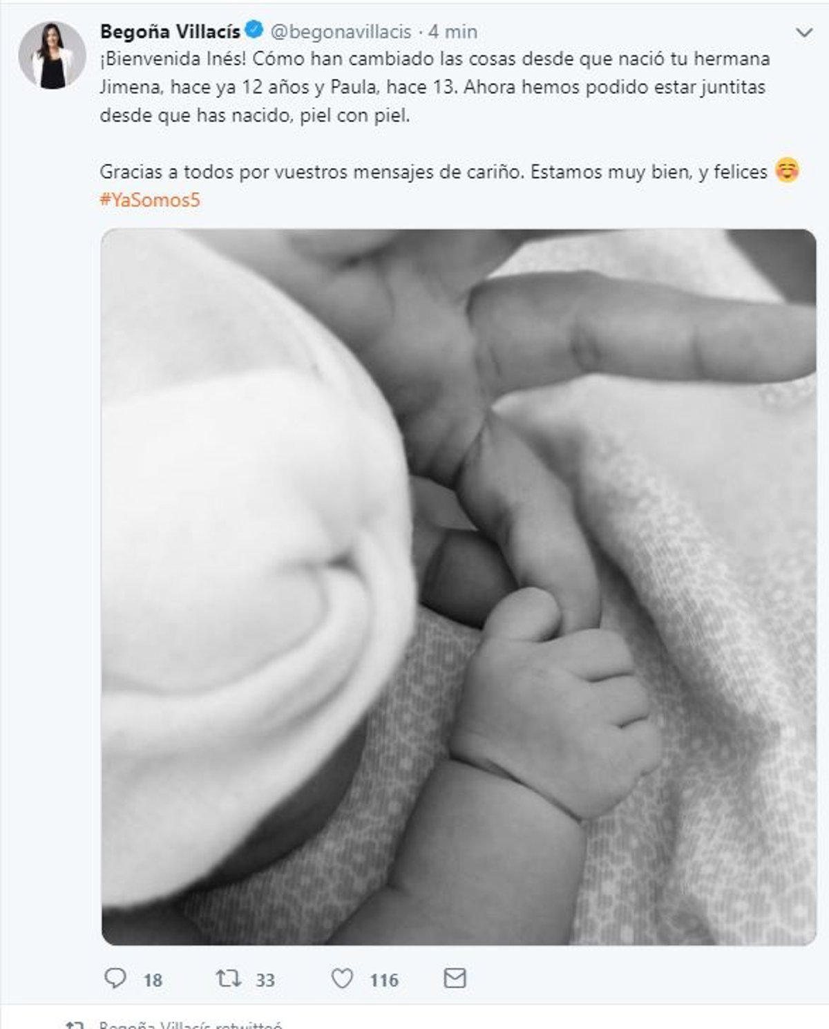 Villacís da a luz en mitad de campaña a su tercera hija en un parto programado - TWITTER VILLACÍS