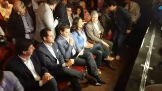 A continuación, el candidato de la Comunidad de Madrid, Ignacio Aguado, se ha subido al atril comentando en primer lugar una anécdota que le pasó ayer mismo cuando un taxista le preguntó si era el aspirante naranja a presidir la región. "Me dijo: ¡que bien te vi en el debate!, pero qué poco sonríes. Yo le respondí que era muy serio todo lo que estaba pasando en Madrid", ha relatado.