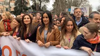 La cabecera de Ciudadanos en la manifestación convocada por la Comisión 8M Madrid por la celebración del Día Internacional de la Mujer ha sorteado a tres jóvenes que se habían sentado delante de la pancarta de la formación naranja para impedir que avanzara, tomando las riendas la vicealcaldesa de Madrid, Begoña Villacís, al decidir levantar el cartel y saltar por encima de las chicas.