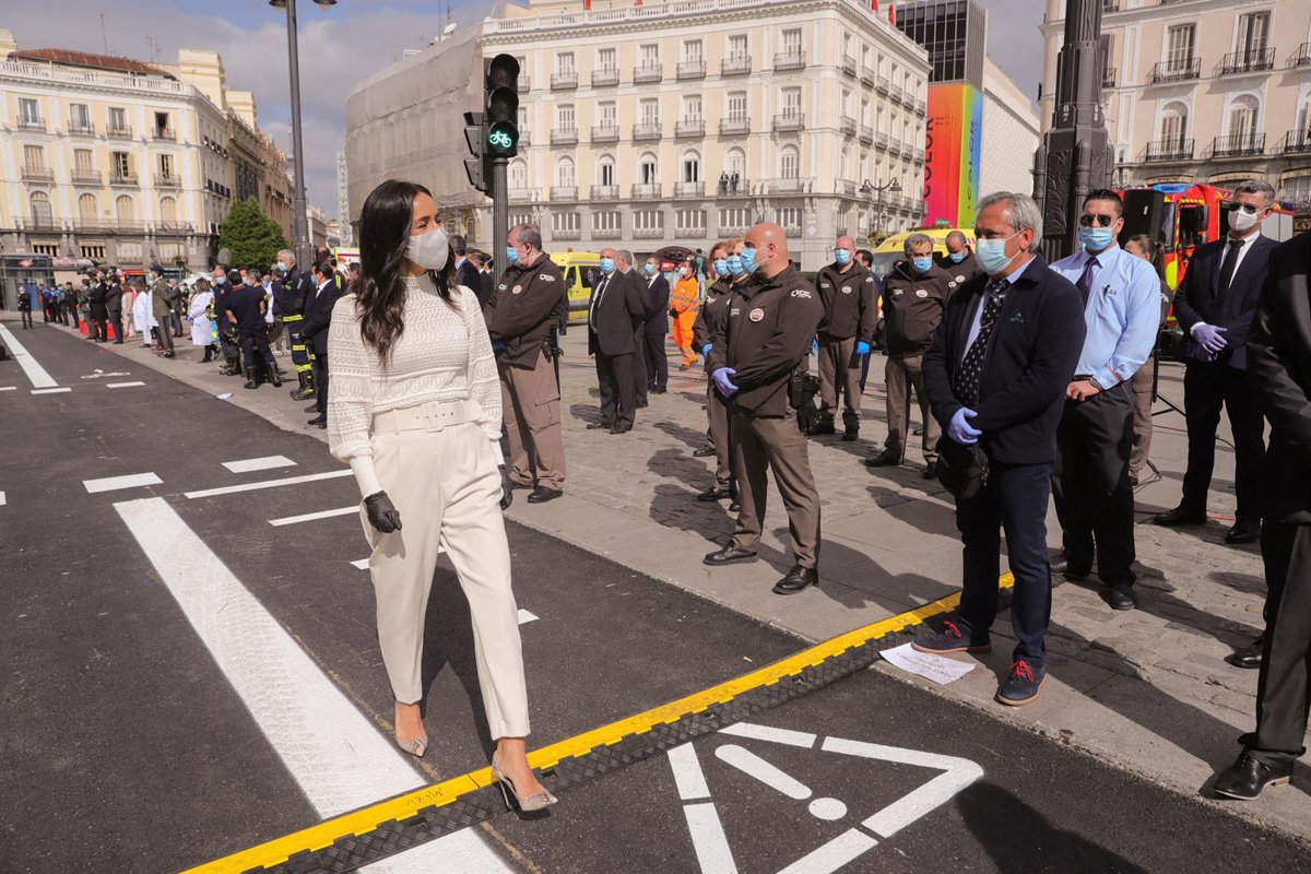 La vicealcaldesa de Madrid, Begoña Villacís (i), participa este sábado 2 de Mayo, en las celebraciones de la fiesta de la Comunidad de Madrid, en la Puerta del Sol, en Madrid (España), a 2 de mayo de 2020. - Pool